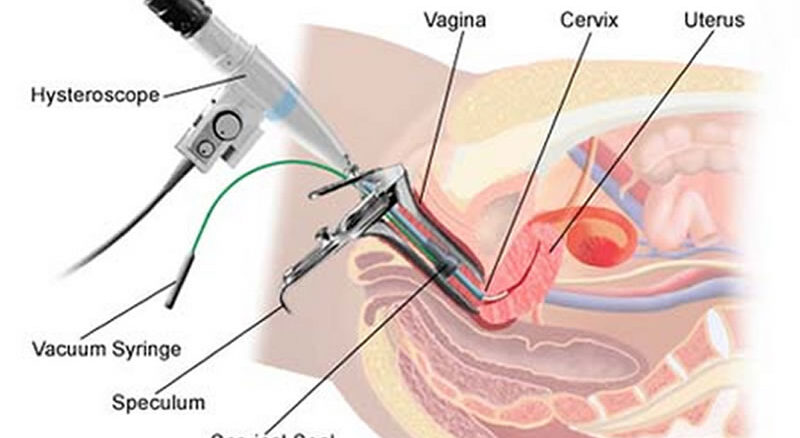 A hysteroscope will be inserted through the vagina and into the uterus and attached to a monitor to look at the lining of the uterus. Fluid [Normal saline] will be used to distend the cavity of the uterus so the walls can be visualized.